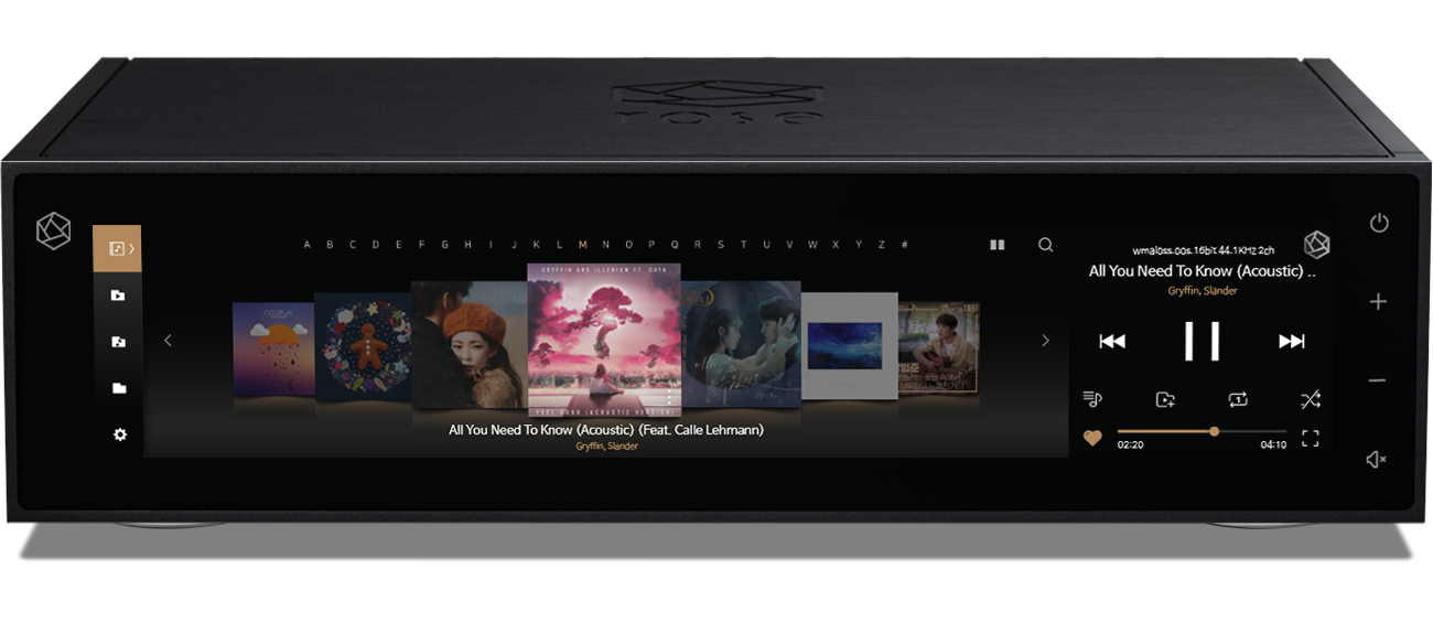 OS Rose OS Ver 1.22.4 (based on Customized Android 7.1) Design Size 430(W) x 316(D) x 123(H) mm Weight 13 kg Body Milled from Solid Block of High Purity Aluminum, Minimizing Vibrations and Noise. Display 14.9-inch-Wide HD IPS Touch Screen LCD CPU Hexa Core CPU; Dual-core Cortex-A72 up to 1.8GHz; Quad-core Cortex-A53 up to 1.4GHz GPU Mali-T864 GPU, OpenGL ES 1.1/2.0/3.0/3.1, OenVG1.1, OpenCL, DX11 MEMORY LPDDR3 4GByte DAC Chip ESS Technology, SABRE ES9038PRO Output level 6.5Vrms (Balanced), 2.2Vrms (Unbalanced) THD 0.0002%(Balanced,1KHz 6.5Vrms), 0.0003%(Unbalanced,1KHz 2.2Vrms) THD + N 0.0003%(Balanced, 1KHz 6.5Vrms), 0.0004%(Unbalanced,1KHz 2.2Vrms) IMD -103dB (Balanced), -103dB (Unbalanced), SMPTE 4:1, 60Hz:7kHz Signal to Noise Ratio 121dB (Balanced),118dB (Unbalanced), A-wt Dynamic Range Max 132 dB (CCITT filter) Stereo Crosstalk Max -138dB, 20-20kHz Output Frequency Response 20Hz to 40,000(+/-0.5dB) Output Impedance 50Ω