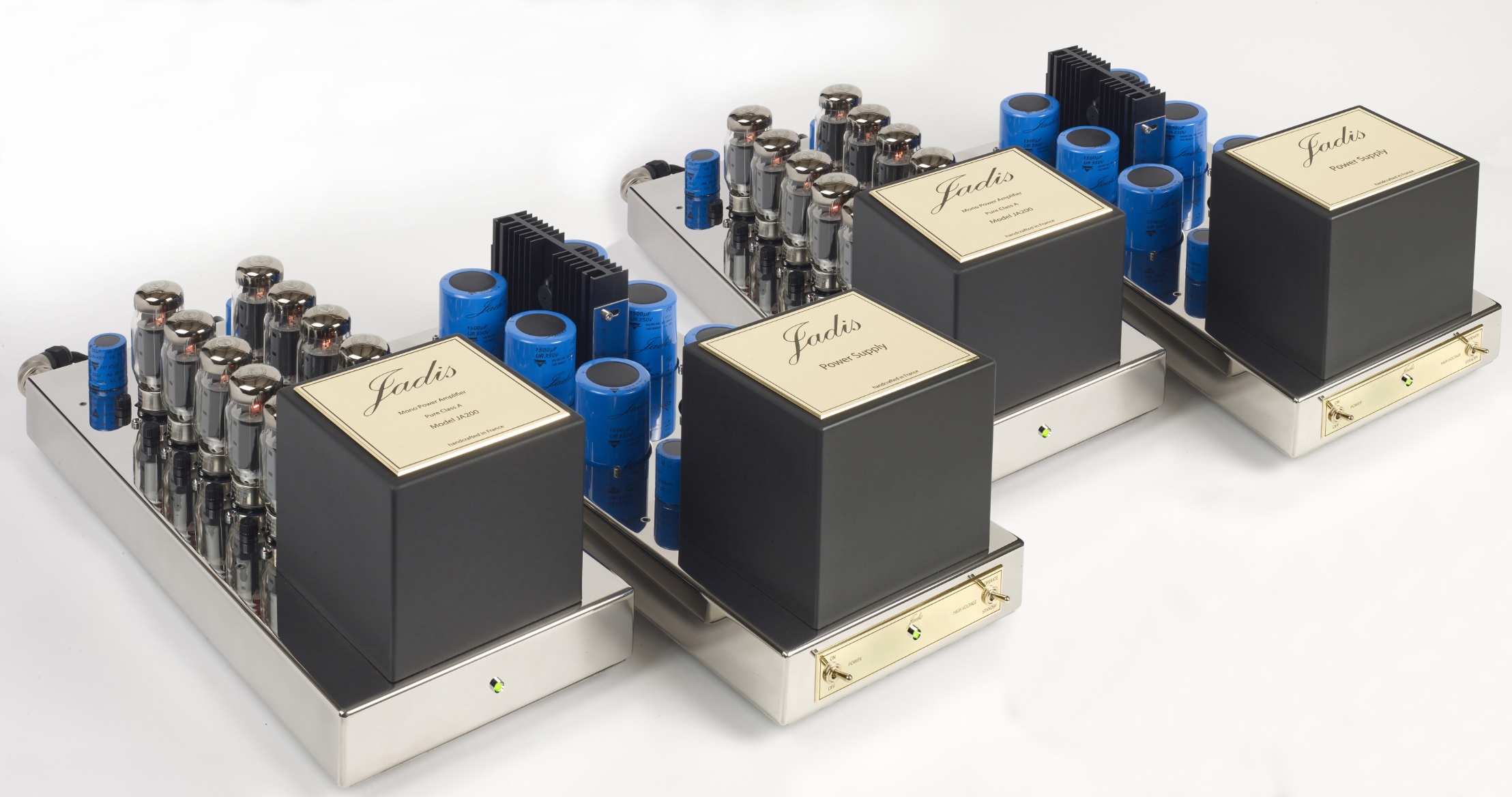 The JA200 MkII includes two mono-block amplifiers each with its own separate power supply for a system total of four chassis. A no holds barred variant of the JA80 MkII on which it’s based, the JA200 MkII is available in balanced or single ended configuration along with 160 watts of Class A power and auto-bias. The most important and obvious characteristic of this amplifier is the sensation that more information is coming through from your source. The JA200 MkII excels at delivering a wide frequency range, with outstanding dynamics and transient response, a deep wide well-defined soundstage and outstanding low-level information presentation. With incredible neutrality, transparency, authentic instrument textures and tonal colors, the JA200 delivers incredibly pure and natural sound. Tube complement consists of: 20 x KT120, 2 x ECC82 and 2 x ECC83 tubes. System weight is 275 lbs.Read More