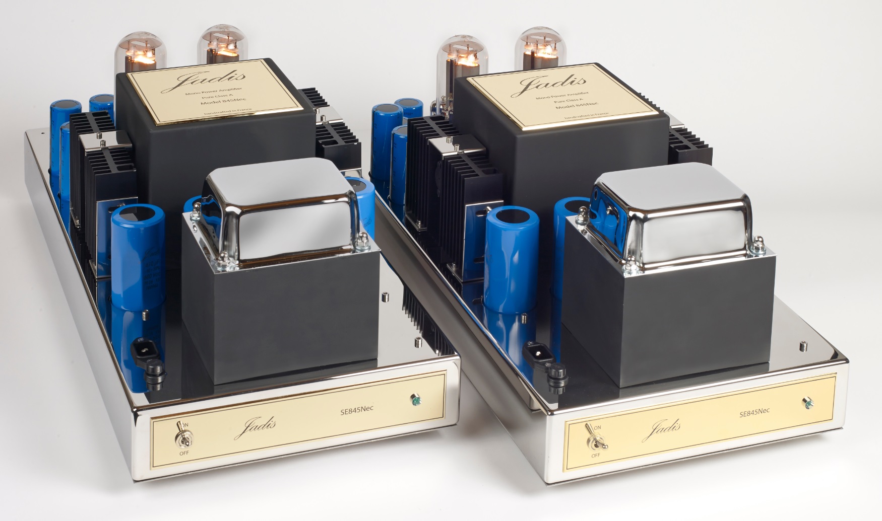 he Ultimate Pure Class A Monoblocks The Jadis 845NEC produces up to 40W per channel in pure class A. It works with an ECC83, an ECC82, two EL84 then two 845 tubes per channel. Its push / pull design allows it to offer twice as much power as the SE845 while keeping a detailed and musical sound. Each amplifier measures 27" x 12" x 12" and weighs 88 lbs. Offering the most luxurious and involving reproduction of music from the 845 output tube, the 845NEC monoblock amplifiers will bring out the most from any 90+ db efficient, non-reactive loudspeaker available. Transparency combined with effortless liquidity and dynamics are conveyed with an unmistakable emphasis of focus and space to render each and every musical experience as special.Read More