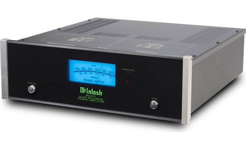 300 watts mono into 8, 4, or 2 ohms, for compatibility with even difficult-to-drive speakers mono balanced XLR and unbalanced RCA inputs mono balanced XLR and unbalanced RCA outputs for daisy-chaining a second monoblock amplifier (for bi-amping) low-distortion Quad Balanced circuit design is fully balanced from input to output oversized power transformer and extra-large capacitors for stable, noise-free operation patented McIntosh output Autoformers ensure any connected speaker receives full power regardless of its impedance ThermalTrak output transistors for lower distortion and cool operation Power Guard continuously monitors both input and output signals and dynamically adjusts the input level to prevent distortion and clipping gold-plated binding post terminals accept bare wire, banana plugs, and spade lugs Power Control in/out jacks for use with compatible McIntosh components fiber optic illuminated glass front panel detachable power cord handcrafted at McIntosh's Binghamton, New York factory total harmonic distortion: 0.005% at 20-20,000 Hz signal-to-noise ratio: 120 dB balanced, 118 dB unbalanced frequency response: 10-100,000 Hz (+0, -3dB) 17-1/2"W x 6"H x 21"D weight: 67 lbs.