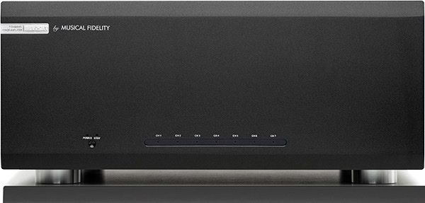 M6x 250.7 - Specifications Output Power: 7x 250W/4 ohms (Peak: 400W) THD+N: 0,003% at 100W power output Frequency Response: 20Hz - 20kHz for 0,5dB SNR: 105dB at 1kHz at 200W power output Damping Factor: >300 Crosstalk 20Hz - 20kHz: >80dB Connections 7x line level RCA input 7x line level balanced XLR input 7x line level RCA through output 7x pair speaker terminals 1x Trigger input & output Input Sensitivity 700mV at RCA input, 1,4V at XLR input General Information Dimensions (WxHxD): 450 x 195 x 435mm Main voltages: 230V/115V Internally set or 100V optional AC 50/60Hz Max. Consumption: 2500W, <0.5W in standby Weight: 32,5kg (ca. 35kg incl. shipping carton)