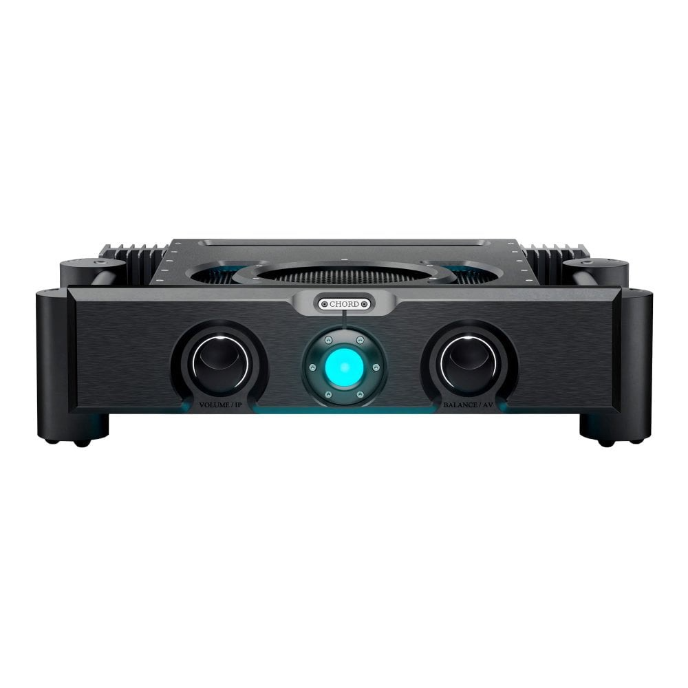 The ULTIMA INTEGRATED is the first new Chord Electronics integrated amplifier for seven years and remains the sole full-width integrated model in the range. All metalwork is precision-machined from solid aircraft-grade aluminium, including Chord Electronics’ iconic Integra Legs. The fascia sports a 28-mm-thick front panel with a perfectly symmetrical aesthetic, centered around a spherical power on/off control with polychromatic lighting, flanked by illuminated volume and balance controls.